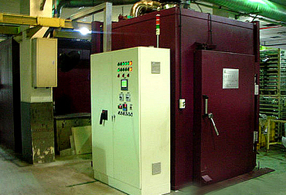 設備簡介:采用連續通過形式,對印石墨后的活塞進行固化。爐內采用空氣加熱方式,加熱溫度具有曲線追蹤。固化溫度為195 ± 5℃